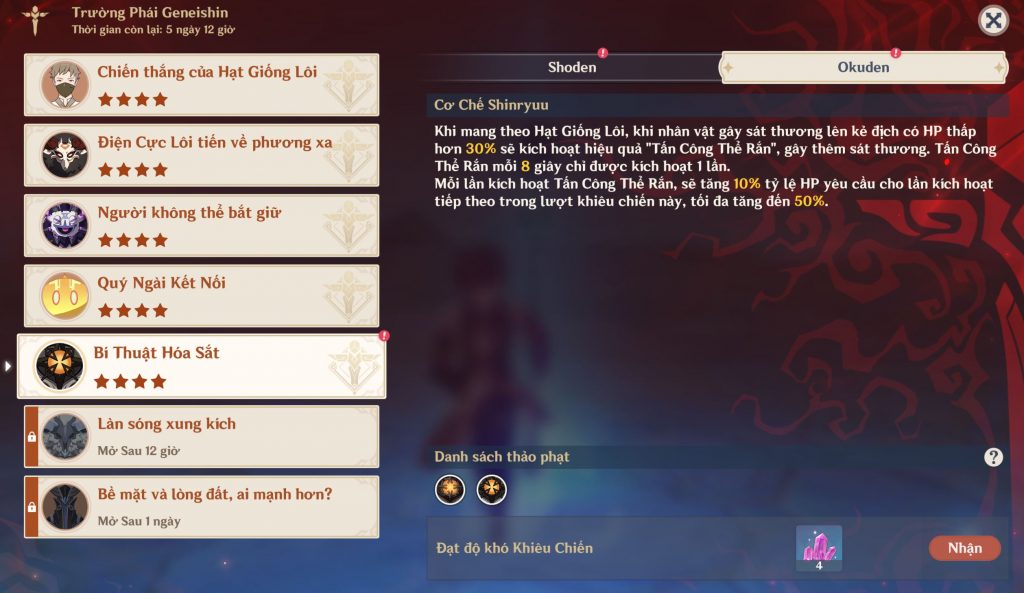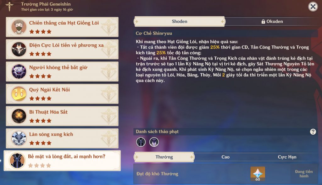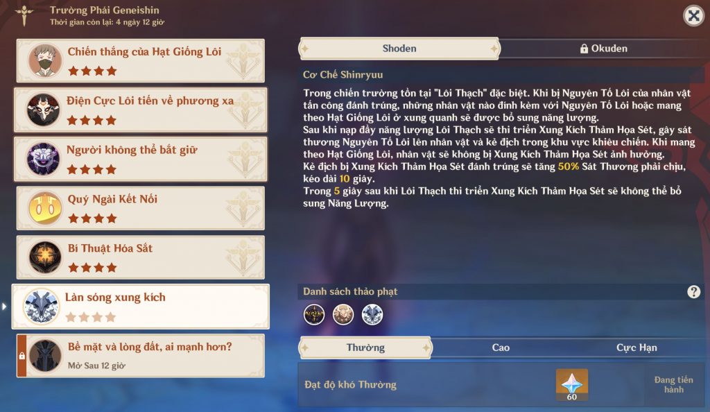 Hiệu quả buff của ngày hôm nay hơi phức tạp. Tuy nhiên đơn giản là ta phải lấy hạt giống lôi rồi cứ thế cắm đầu đánh thật nhanh ở gần các trụ điện là xong. Tuyệt vời nhất là có Kazuha gom quái lại trụ điện và tiêu diệt, nếu không có Kazuha thì có thể dùng Sucrose hoặc Venti thay thế.