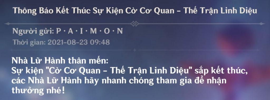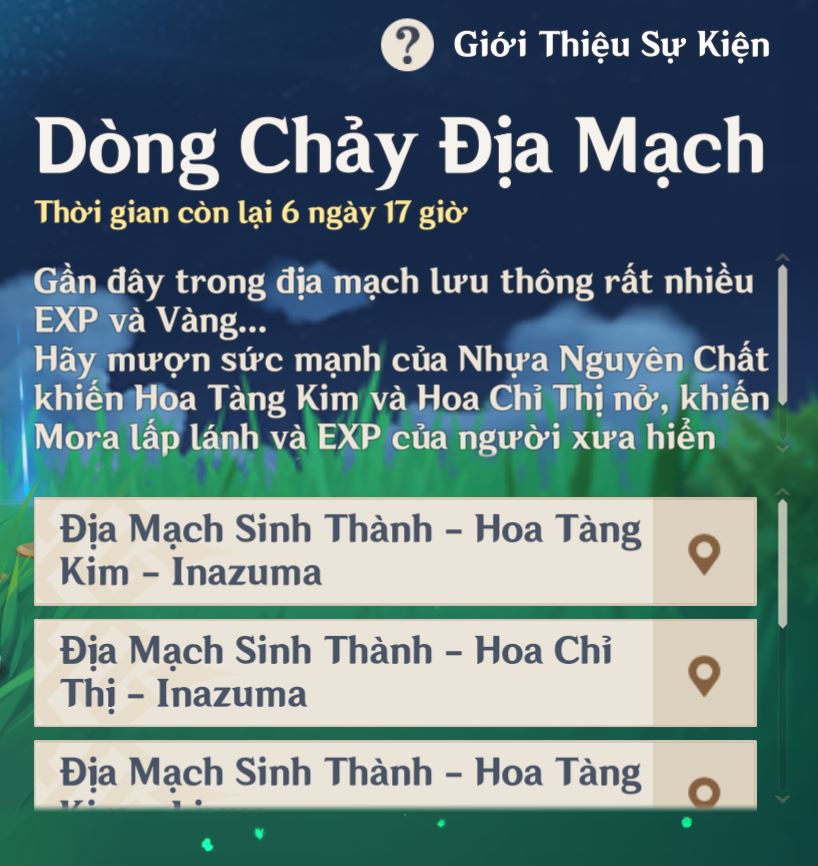 Chú ý sự kiện Dòng chảy địa mạch đã khai mở và sự kiện Cờ cơ quan thì sắp kết thúc.